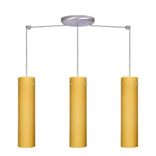 #Light Bulb:(3)100w A19 Med F Incand, Glass:Vanilla Matte, Cage:No Cage, Finish:Satin Nickel This appealing three light pendant provides a versatile solution for decorative lighting. Handcrafted European glass 10' Clear-coated SVT cords Includes two stem hooks Suitable for sloped ceilings Dimmable with standard incandescent dimmer