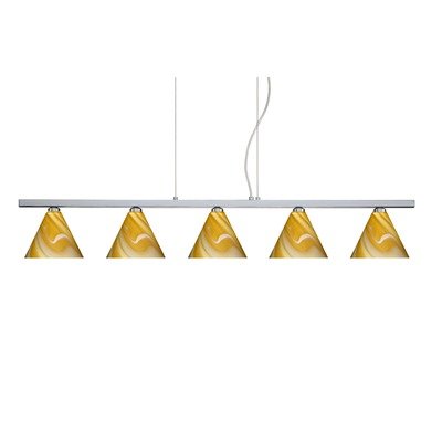 Kani Five Light Cable Hung Linear Pendant Finish: Polished Nickel, Glass Shade: Vanilla Matte