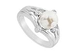 Cultured White Akoya Pearl and Diamond Ring : 14K White Gold - 0.15 CT Diamonds Size 6