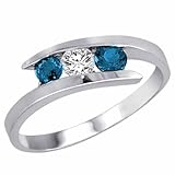 Platinum 3 Stone Channel Set Round Blue & White Diamond Engagement Ring (0.50 ctw, H-I, I1) Size 7This platinum diamond ring is channel set with 3 round diamonds. The ring is set with 2 irradiated blue diamonds and 1 white diamond. The total carat weight is 0.50 cts. The white diamond is H-I color and SI clarity.....