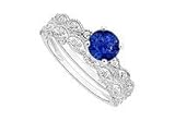 Sapphire and Diamond Engagement Ring with Wedding Band Set : 14K White Gold - 0.50 CT TGW Size 13.5
