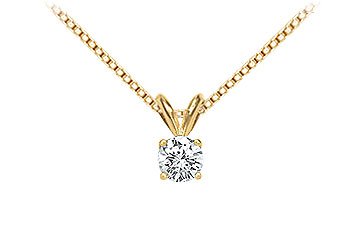 #A round diamond is delicately suspended in a rich 14K yellow gold 4-prong mounting. This diamond solitaire pendant has a total weight (TDW) of 0.25 ct and comes with a standard 16 14K gold chain.