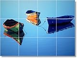 | ✚✚✚ Boat Ship Picture Ceramic Tile Mural B002. 36x48 Inches Using (12) 12x12 ceramic tiles. We custom make every ceramic tile mural one piece at a time. Our staff pay great attention to detail & will work with you in designing your perfect mural. Our murals are used in kitchen back splashes bathroom shower walls any indoor wall or outdoor shaded area (no direct sun but all weather stable). Contact us with any questions or to request a quote. FREE SHIPPING to US addresses.