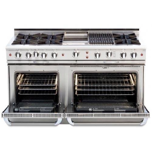 Capital CGSR604BB2L - 60"six open top burner gas self-clean range w/ 12? BBQ grill 12? Thermo-Griddle+ convection oven - LP